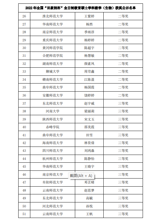 “田家炳杯”全日制教育硕士专业学位研究生教学技能大赛决赛于2022年11月23日落下帷幕。生命科学学院2021级学科教学(生物)研究生周苛鑫同学荣获二等奖,陈彦老师获得优秀指导教师奖,取得生命科学学院参加该项赛事以来的最佳成绩。