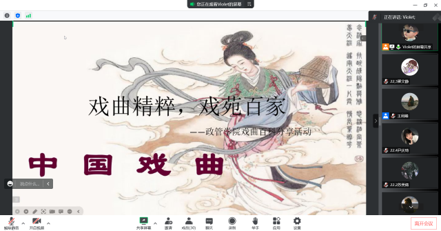 为传播独特的戏曲文化,激发同学们对戏曲的喜爱,12月5日,政治与公共管理学院于线上举办“戏曲精粹,戏苑百家”戏曲百科分享活动。