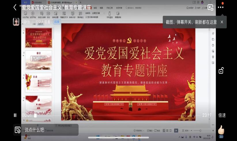为深入学习贯彻习近平新时代中国特色社会主义思想,铸牢中华民族共同体意识,培育有坚定理想信念和责任担当的时代新人,2月20日,传媒技术学院于线上举办了“爱党爱国爱社会主义”教育专题讲座活动。本次活动由学习部副部长刘静怡担任主讲人,传媒技术学院部分学生参与了此次活动。