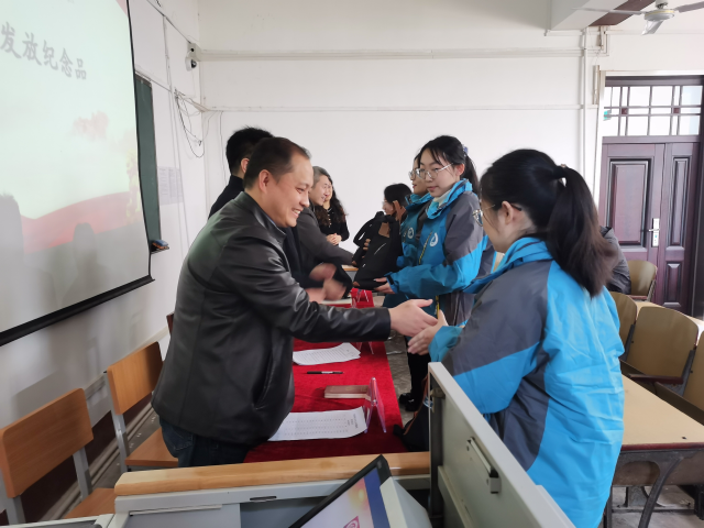 援疆支教学生代表范梦昕在发言中也表明每一位援疆学子都将通过言传身教感染学生,带动学生,认真学习教师技能,积极参与实践锻炼。大会第四阶段,本次出席大会的老师们为支教团学生发放纪念品,送去援疆出征祝福。随后,全体学生齐声高唱,嘹亮的歌声包含着自己将躬身西部,让青春之花在西部绽放的决心。