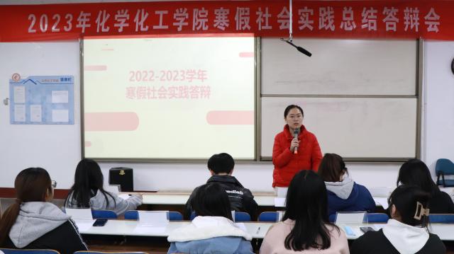 牢记时代使命,敢当复兴大任。为深入学习贯彻党的二十大精神,引导大学生在社会课堂中受教育、长才干、作贡献,在观察实践中学党史、强信念、跟党走,提高学生们运用知识解决实际问题的能力,进一步巩固转化学生社会实践成果,对志愿服务队寒假成果进行评价总结与表彰,2月21日,化学化工学院于东校区4#C205举办2023年寒假社会实践总结答辩会。化学化工学院团委书记刘丽霞、学生会主席团、中心主任以及各服务队成员参加此次答辩活动。