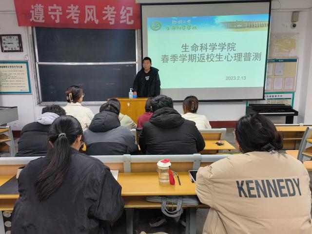 为更好地了解学生心理健康情况,及时发现可能存在的心理健康问题,帮助同学们以阳光的心态迎接新学期,2月21日,生命科学学院于东校区2#512举办“春季学期返校生心理普测”活动,本次活动由辅导员任庆超主持。