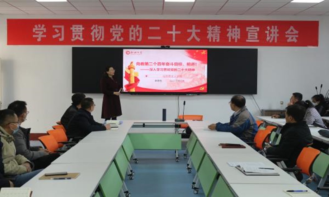 宣讲报告围绕党的二十大主题,从党过去五年的工作和新时代十年的伟大变革、开辟马克思主义中国化时代化新境界、新时代新征程中国共产党的使命任务、全面建设社会主义现代化国家的目标任务等方面,对党的二十大精神进行了全面解读。报告指出,党的二十大是在全党全国各族人民迈上全面建设社会主义现代化国家新征程、向第二个百年奋斗目标进军的关键时刻召开的一次十分重要的大会,是一次高举旗帜、凝聚力量、团结奋进的大会。党的二十大作出的各项决策部署、取得的各项成果,必将对全面建设社会主义现代化国家、全面推进中华民族伟大复兴发挥十分重要的指导和保证作用。