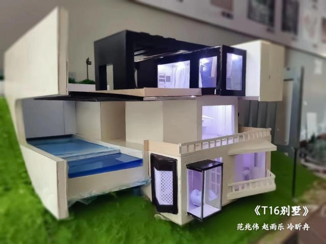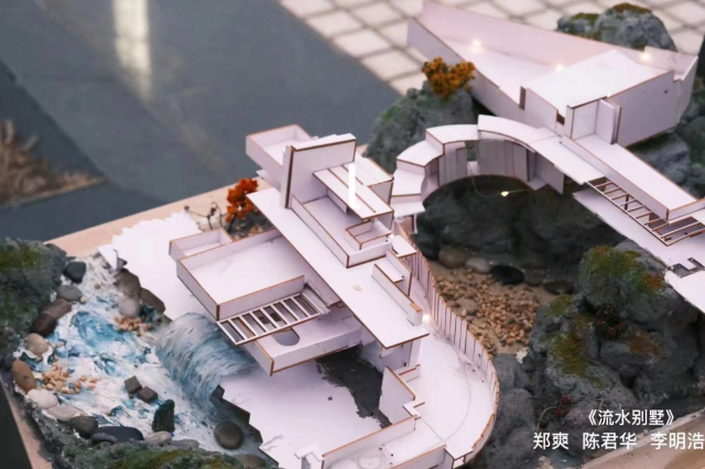 历时一个月,奇思妙想、费尽周折,从二维平面到三维立体。pvc板、木板、石膏……各样的材料在巧思下变为精致的模型,作品有世界著名设计师的经典作品、影视游戏IP中独具特色的建筑形象以及中国古代经典的传统建筑。