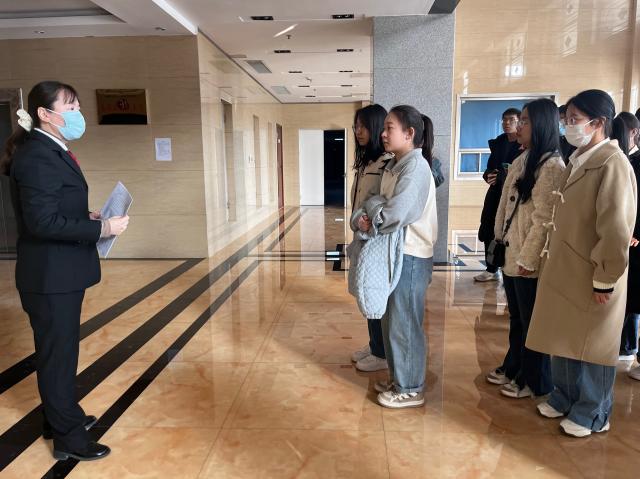 法院负责人首先向在场学生介绍活动注意事项,引导在场学生保持安静,遵守现场秩序。活动过程中,负责人以观看视频的方式向在场学生讲解自助立案机、自助查询机的使用流程,指出法院通过采用人工与电子相结合的方式,切实提高为人民立案、办案的效率,充分保障人民的合法权益。在负责人指引下,在场学生自发有秩序地参观法院审判庭、指挥中心及文化长廊,了解审判流程和审判纪律,通过工作人员的讲解,在场学生对法庭组成人员、法庭布局、案件审判具有更深一步的了解,加强对法院的敬畏,亲身领悟法院工作的严谨性。在此基础上,在场学生向专业人员提出“有组织犯罪的性质是什么”等问题,负责人根据《中华人民共和国反组织犯罪法》指出,有组织犯罪是指经过谋划的有组织的共同犯罪,属于国家扫黑除恶的重点范畴并提醒在场学生注意保护自身安全,必要时利用法律维护自身合法权益,鼓励法科学子学好专业知识,明确努力方向,做学法、守法、知法、用法的倡导者、践行者。
