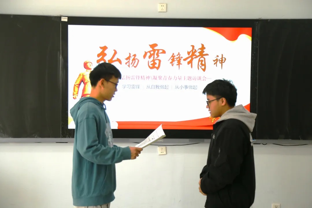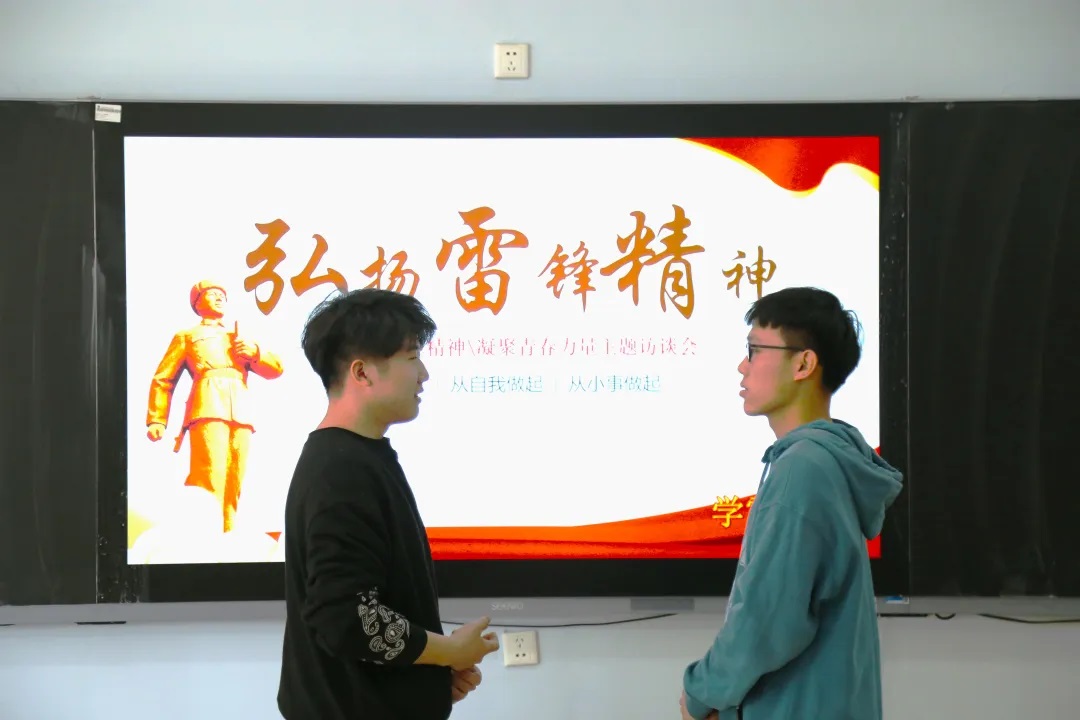 活动最后我们与陈昊阳,李新颖,孙云龙三位同学进行了交流,几位同学和我们分享了一些防疫工作的经验,关于什么是真正的雷锋精神,几位同学都给出了各自的看法。“雷锋精神是一种价值观,值得我们学习”;“雷锋精神绝对不是一些高大上的套话,雷锋精神就在我们的身边”;“践行雷锋精神不需要我们做惊天动地的大事,从小事做起,我们每个人都能成为雷锋。”
