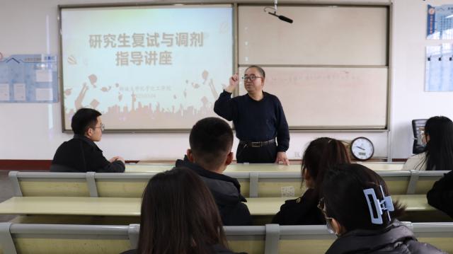 明灯启“研”途,乘风筑梦想。为了增加同学们对于考研复试的了解,帮助同学解决在复试中遇到的问题,提高考研复试技巧,3月4日,化学化工学院于4#C101举办考研复试与调剂指导讲座。本次讲座由化学化工学院辅导员贾云超主持,李大成主讲。