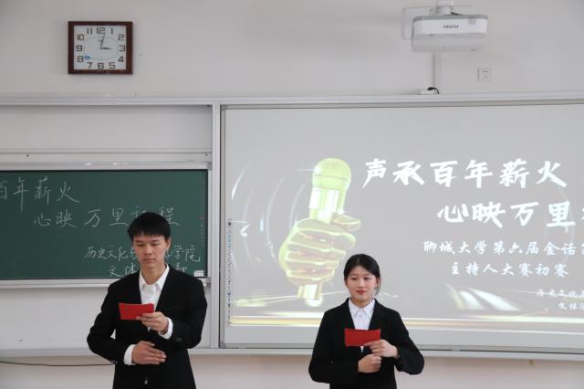 为锻炼同学们的语言表达能力,充实校园文化生活,展现大学生积极热情、富有活力的青春风采,选拔主持菁英,为热爱主持的同学提供一个展示自我的舞台,3月18日,历史文化与旅游学院于6#A503教室举办“声承百年薪火,心映万里征程”第六届“金话筒”主持人大赛初赛。