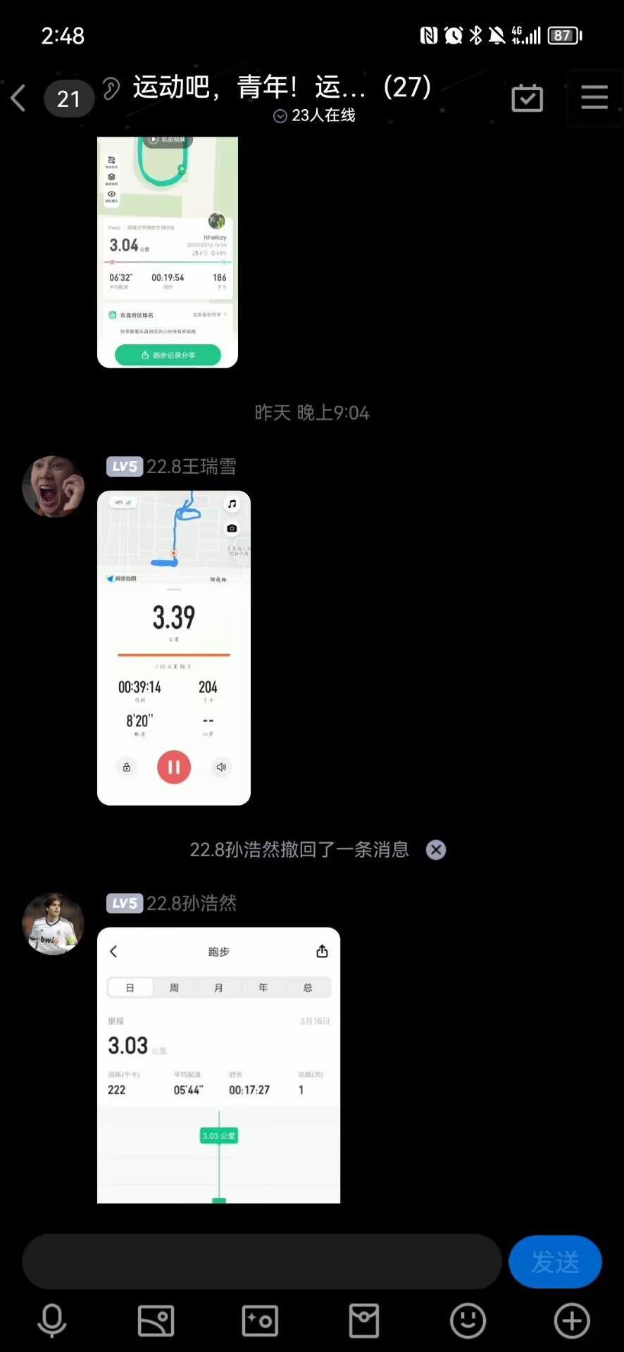 鸣奏青春旋律,抒写运动乐意。本次活动提前建立线上打卡群,参赛者以截图形式在打卡群内上传每天的运动数据。活动期间,同学们的参与热情度高涨,积极参与了多种运动方式,包括跳绳、跑步、仰卧起坐等。参与活动的同学还在打卡圈子里进行分享交流,将自己运动后的一些感悟分享给大家一起学习,例如:连续的打卡跑步,可以使同学们每天精神饱满,充满活力、气血饱满的去面对每一天,也可以帮助同学们在运动中缓解压力、释放情绪、进而塑造积极进取的精神和健全的人格。除此之外,参与活动的同学在自己锻炼身体的同时还把这一份成果与快乐也分享给其他人,鼓励身边的同学一起参与体育运动。