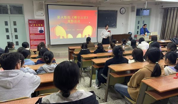 以史为鉴,开创未来。为弘扬“两弹一星”精神,进一步引导青年学子铭记革命历史,传承红色基因,3月24日,由校团委主办,教育科学学院承办的“不畏艰险 无私奉献”星火影院观影活动在11#C601举行。本次活动邀请了文学院广播电视学系主任纪楠担任主讲教师,学院党委副书记、副院长吴伟伟,团委书记王瑾参加活动。