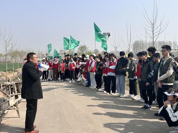 农学与农业工程学院副院长褚鹏飞老师首先上台发表动员讲话,鼓励同学们要有坚定的信念、饱满的热情和敢为人先、不负时代的志向,能够通过劳动教育与实践,感受黄河文化、体悟耕读文明,能够了解和热爱新时代的农业、农村、农民,胸育情怀、骨育精神、血育文化、脑育素养、心育奋斗、体育实干。基地负责人、东阿县政协常委、聊城大学硕士研究生导师王昌伟老师向同学们介绍了基地的基本情况,对同学们的到来表示热烈欢迎,并强调了智慧农业是未来农业的引领者。智慧农业张冬雪同学代表全体学生上台发言。她表示,同学们将以昂扬的斗志、全身心地投入到劳动实践课程的学习中,提升集体意识、合作意识、进取意识;培养热爱劳动、吃苦耐劳、勤俭节约的品质,展现聊大学子的良好精神风貌。最后,老师们为各队队长授旗并佩戴袖章,全体师生合影留念。仪式后,同学们在老师的指导下进行了分组劳动。