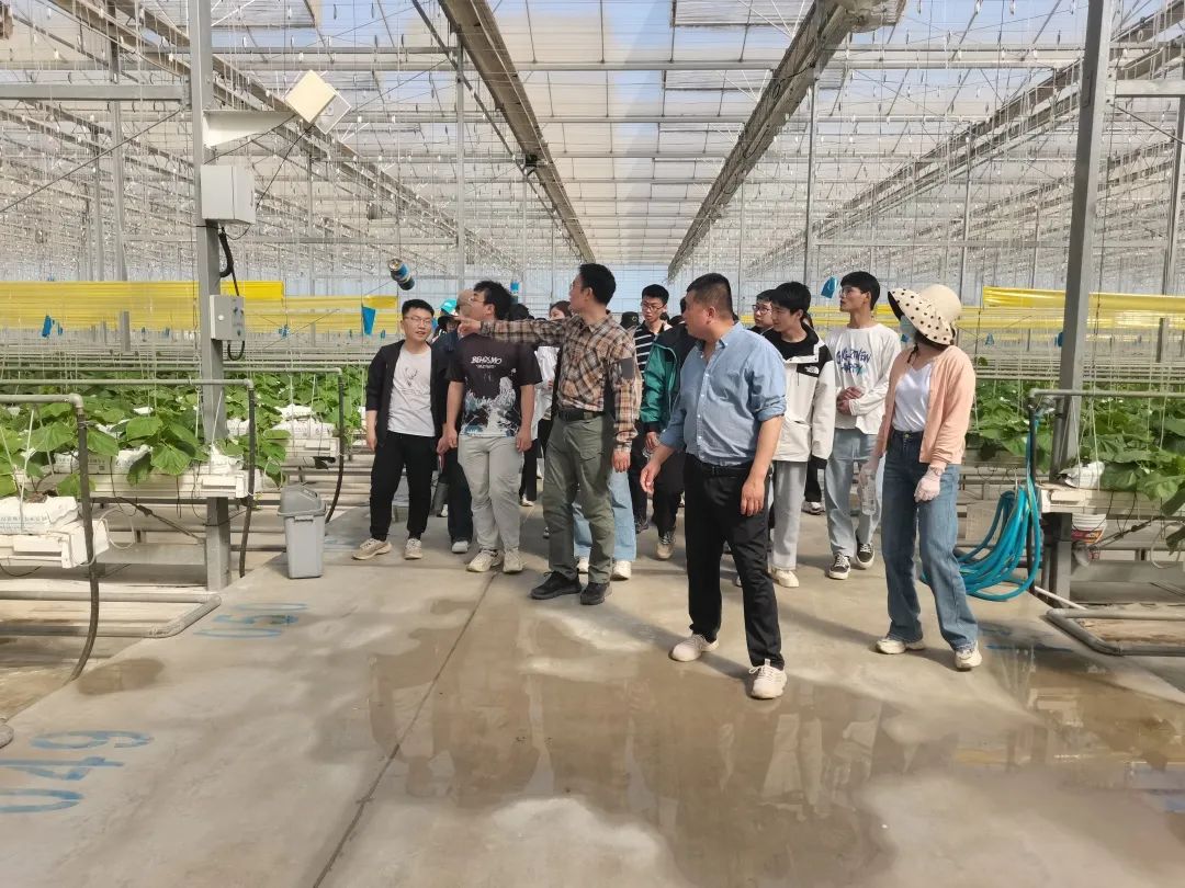 下午同学们又来到了被习近平总书记点名表扬的“鲁西小寿光”“大棚村”——茌平区贾寨镇耿店村。社会的进步离不开农业的发展,科技的进步不断推进农业的发展,温室大棚就是科技适用于农业的产物,已经成为乡村振兴事业的主力军。跟随着老师的讲解,我们先后参观了种植黄瓜、卷心菜、西红柿、草莓的大棚。在棚内的植物种植于泥炭上,有透气性强、病虫害低等好处。农村地区数字基础设施的发展,助力智慧农业蓬勃发展,体现了科研人员和劳动人民知行结合的光芒。本次参观同学们了解了现代新型大棚,近距离观察了田地间的大棚农业,坚定了对智慧农业的信心与专业信念。
