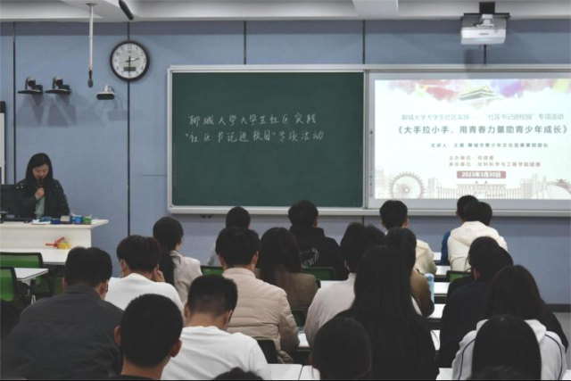 2023年3月30日下午,由校团委主办、材料科学与工程学院承办的“社区书记进校园”专项活动于东校区4#B306举行。本次活动邀请聊城市青少年综合服务中心(青少年文化宫)赛事部部长王璐担任主讲,全校100余名学生团干部和学生骨干参加。