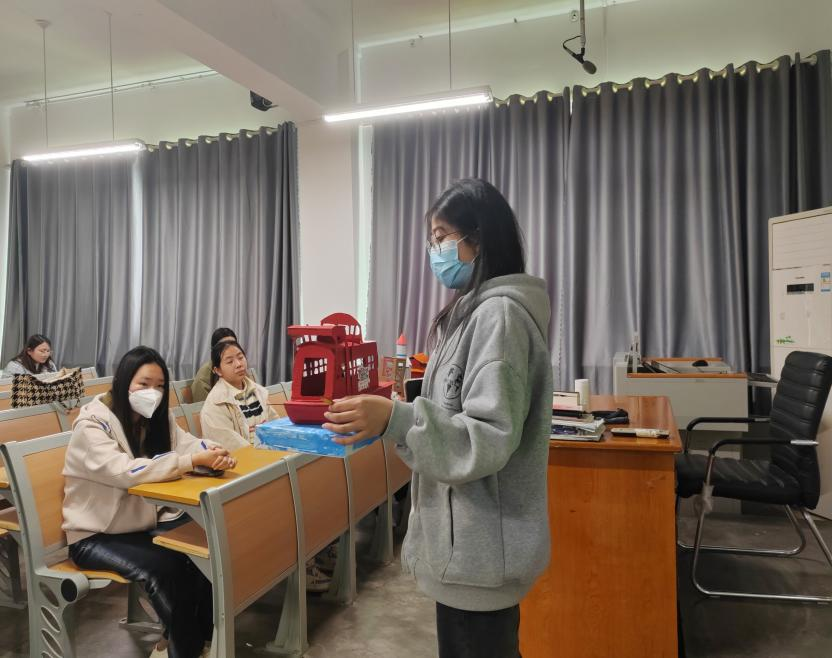 活动伊始,主持人先讲解了本次活动的制作要求,同学们需要在规定时间内,使用自己带来的纸质材料围绕“歌颂时代发展,奋进崭新征程”的主题进行制作。四十分钟结束后,参赛同学按抽签顺序依次进行上台讲解。参赛的同学们从创作理念、制作方式以及参赛作品表现形式三方面向评委和观众对自己制作的纸模做出讲解。有些参赛同学的创作理念来自中国航天事业的蓬勃发展,制作出了航天火箭的模型,通过中国航天的进步感受到时代的进步;有些同学的创作理念来自吴京等人主演的国内经典科幻电影《流浪地球》,制作出了电影中的基地模型,通过这部科幻电影感受到新时代中国文化的魅力。同学们各展风采,用心灵手巧创作出精致美丽的纸模作品,用优美的语言描绘作品,为作品增添文化色彩。评委根据参赛同学的讲解以及制作的纸模进行点评,活动结束后,同学们合影留念。