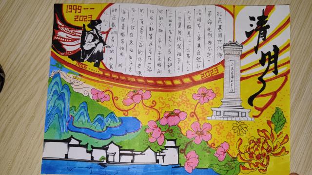 活动中,同学们积极报名、踊跃参与,充分发挥个人的想象力与创造力,通过制作图文并茂的精美手抄报作品来表达自己对革命英雄的尊敬与缅怀。他们投入极大的热情,精心构思,所绘作品内容丰富,主题明确,版面图文形象生动,用画笔再现革命历程,用文字讲述英雄事迹,抒发对先辈们的崇敬之情、对民族精神的自信心和自豪感。一份份“清明节手抄报”充分表达了同学们对先烈的感恩情怀以及对美好生活的向往和憧憬。最后,评委们秉持公平公正的原则,从主题、版面设计、书写绘画以及内容等方面对作品进行量化打分,分别评选出一等奖一名,二等奖两名,三等奖三名。
