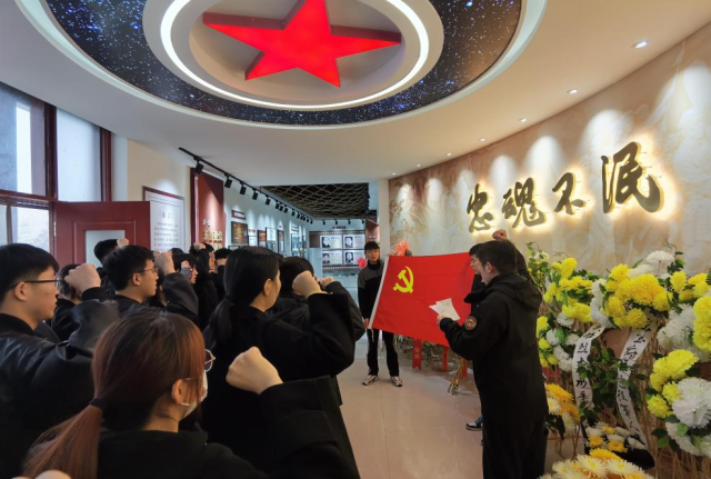 在革命烈士纪念碑前,大家列队肃立,着装整齐,神情肃穆,怀着对革命先烈的深切哀思之情,面向纪念碑颔首默哀三分钟,并敬献花篮。师生们来到烈士墓区,通过瞻仰、擦拭墓碑等方式深切缅怀为革命事业牺牲的先烈,表达对革命先烈的追思、怀念之情。随后,大家走进英烈事迹展厅,党员们面向党旗庄严宣誓,铭记入党誓言,并怀着无比敬仰之情参观展厅,感悟革命先辈的丰功伟绩和牺牲奉献精神。