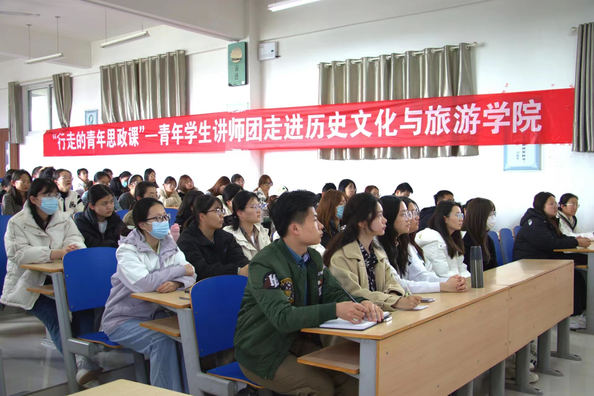 4月6日,聊城大学青年学生讲师团应邀赴历史文化与旅游学院进行宣讲,宣讲题目是“微光已现,何惧远航——学习中国式现代化”,讲师团成员高菲担任主讲人。