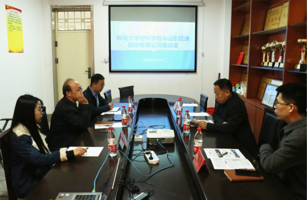 2023年4月7日,聊城大学材料科学与工程学院携手山东冠洲股份有限公司于4A教学楼会议室就校企合作开展座谈会,学院院长滕谋勇、材料科学与工程专业系主任李朋、团委辅导员郭天乐、山东冠洲股份有限公司代表王新民、赵东伟共同出席本次座谈。