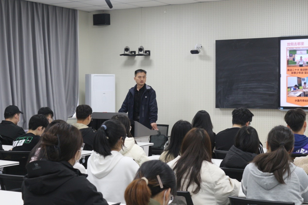 4月4日上午,在地理与环境学院智慧教室4#B208,聊城市东昌府区新区街道王卷帽社区党委书记周洋受邀向60余名学生团干部、学生骨干及有关社团负责人作了《传播党的声音 凝聚奋进力量》专题报告。