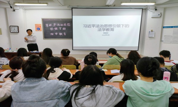 4月10日,法学院于西校区11#A110开展习近平法治思想引领下的法学教育专题党课,学院党委副书记、院长杨道波担任主讲人。本期“青马工程”基础班及入党积极分子培训班全体成员参加学习。