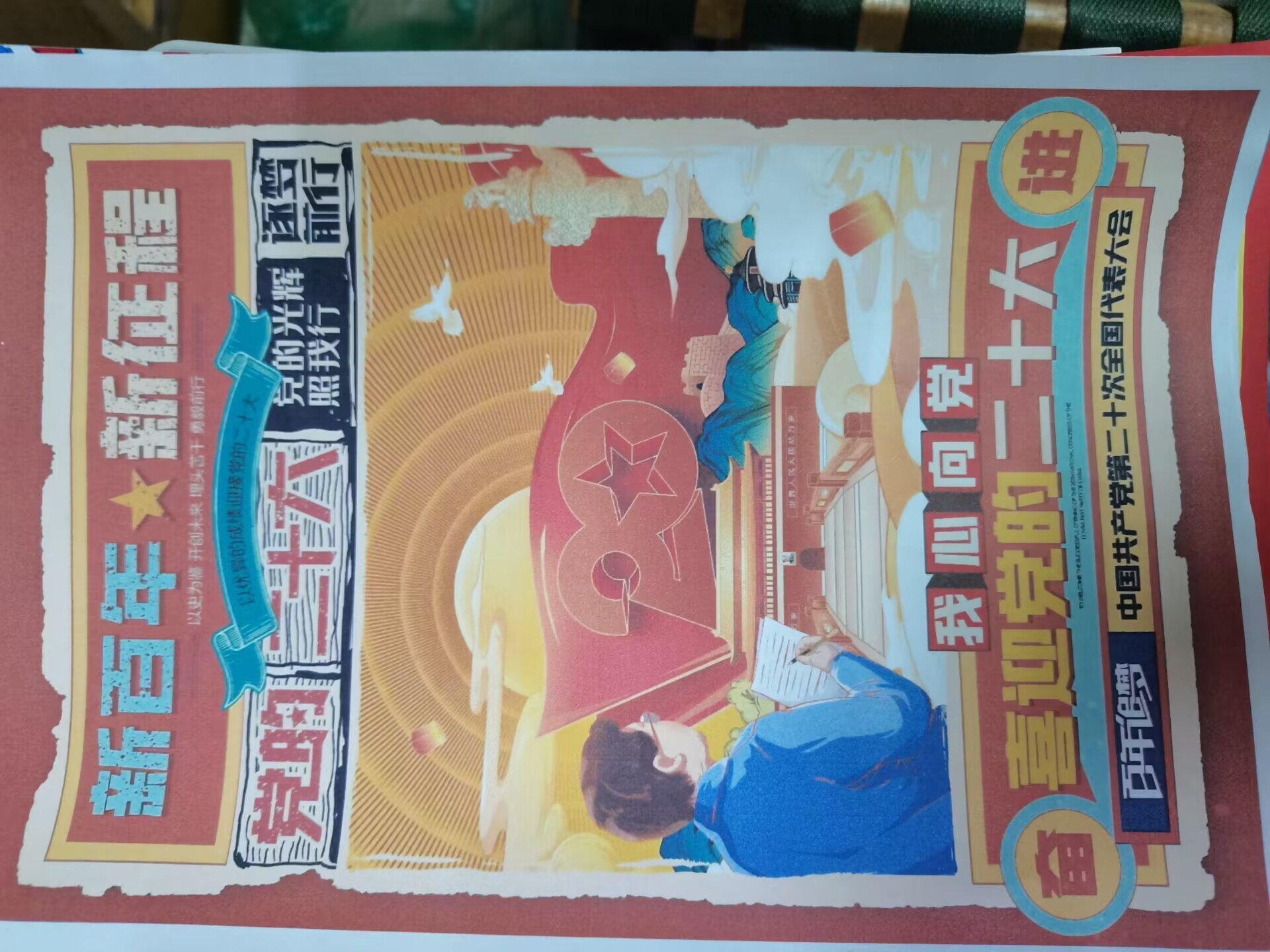 活动前期,志愿者确定活动形式及主题,制定参赛规则并号召同学们积极报名参与。活动中期,同学们提前搜集资料,学习有关党的二十大的理论知识,并紧贴党的二十大主题,将对祖国的美好祝愿和对党的殷殷期盼寄于海报之中,别出心裁的设计与大胆的配色相结合,笔墨间尽显新时代青年的责任与担当,同时也渲染出“请党放心,强国有我”的铮铮誓言,坚定了永远跟党走,迈进新征程的决心。活动最后,同学们将电子版及纸质版作品按指示上交完毕,评委们秉持公平、公正、公开的原则对海报进行评比打分,最终评定出一等奖两名,二等奖三名,三等奖四名。