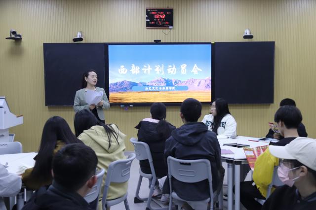 为弘扬“奉献、友爱、互助、进步”的志愿服务精神,号召广大青年学子到西部基层建功立业,4月20日,历史文化与旅游学院于6#A301召开2023届毕业生西部计划动员会。本次动员会由团委书记石晓晗担任主讲人,本科应届毕业年级主要学生干部及部分研究生参加会议。