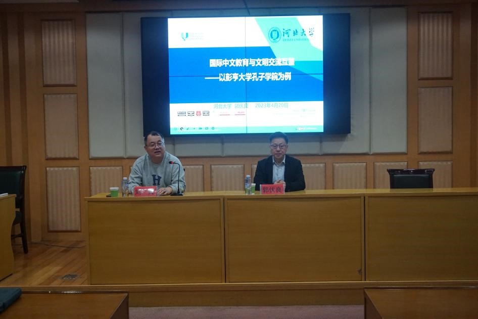 2023年4月20日,恰逢第14个联合国中文日,聊城大学外国语学院(大学外语教育学院)邀请河北大学博士生导师郭伏良教授做了题为《国际中文教育与文明交流互鉴》的学术讲座。本次讲座为“海渊大讲堂”系列之二十六期,由学院副院长刘宾主持,汉语国际教育专业学生及学院部分教师百余人参加。