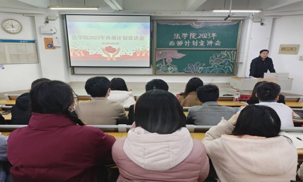 4月23日,法学院于西校区11#C310召开2023年西部计划宣讲会暨就业促进会,法学院党委副书记、副院长刘洁,团委书记刘凤芹,辅导员孙曦、张雅琪及2023届全体在校毕业生参加此次会议。