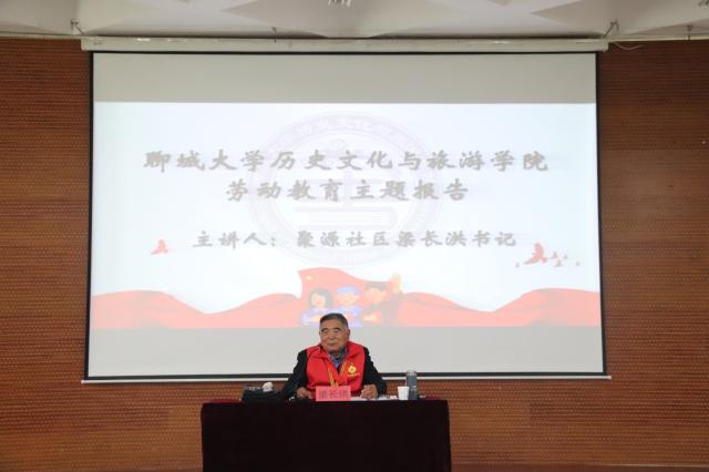 弘扬劳模精神,争做时代先锋。为加强大学生劳动教育,充分发挥劳动教育基地作用,筑牢立德树人基石,5月7日,历史文化与旅游学院于6#A106报告厅举办劳动教育暨五四青年思想教育主题报告会。本次报告会特邀柳园街道聚源社区物资局居民网格党支部书记梁长洪担任主讲人,学院主要学生干部参加。