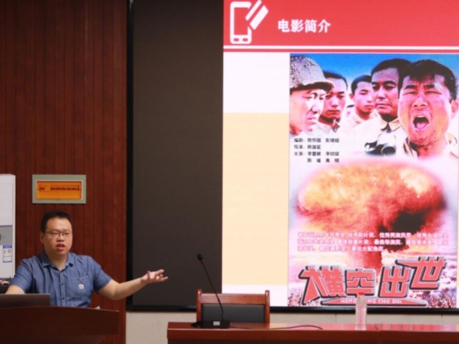 横空出世,莽昆仑,阅尽人间春色。观影开始前,主讲人纪楠以“不畏艰险,无私奉献”为主题向同学们介绍电影《横空出世》中所蕴含的精神意蕴,强调正是革命先辈的无私奉献才托起了我们今天的幸福生活。老一辈革命者不屈不挠、自力更生、不畏艰险、无私奉献的精神将会一直传承下去,激励无数国人,我们也应该发扬这种精神,不断充实自己、完善自己。影片《横空出世》改编自真实历史事件,讲述了以陆光达为首的核科学家和冯石为首的人民解放军,携手并进,在极端困难的情况下,打着算盘、喝着盐碱水研制出了我国第一颗原子弹。电影恢弘大气,真挚激情,没有花里胡哨的特效,就像铁锤一锤一锤贯穿铜墙铁壁,用朴实的镜头还原那段振奋人心、热血沸腾的历史。影片中最高潮的片段是原子弹的成功爆炸,那朵蘑菇云升起的时候,现场每一位同学的眼中都升腾起了一朵绚烂的烟花,无以言表,却又热泪盈眶。观影过程中同学们聚精会神,深受感触,观至动人之处,不禁潸然泪下。导演用朴实的镜头表达出那个年代每个人真挚朴素的爱国情怀,正是革命先辈心中的那份笃定和信仰,让每一位观看的同学跟着那份信仰握紧拳头,在激情中一起燃起来。