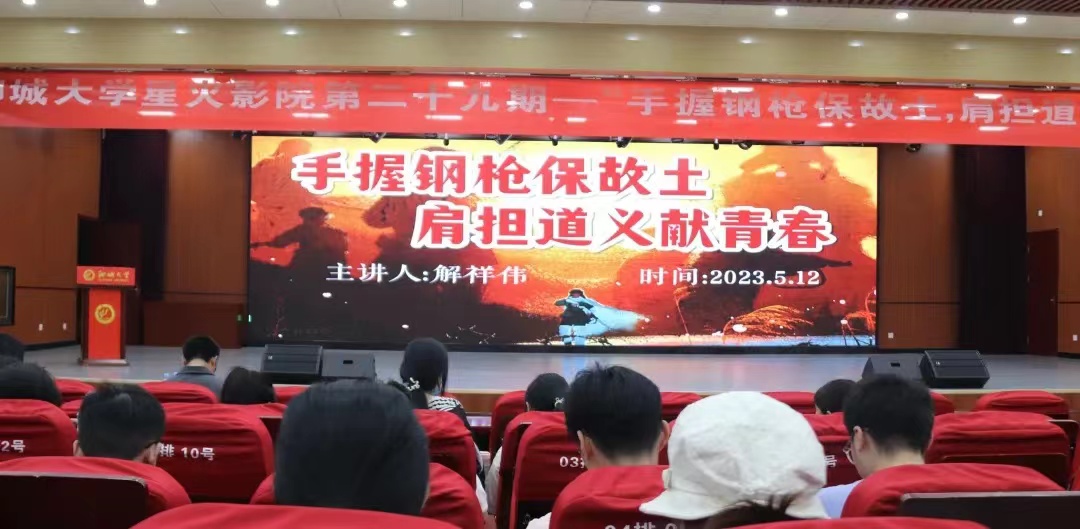 为深入学习贯彻习近平新时代中国特色社会主义思想,加强学生爱国教育,培养学生家国情怀,5月12日,我院于晨晖楼三楼报告厅举办“手握钢枪保故土,肩担道义献青春”星火影院观影活动。我院解祥伟老师担任本次活动的主讲人。