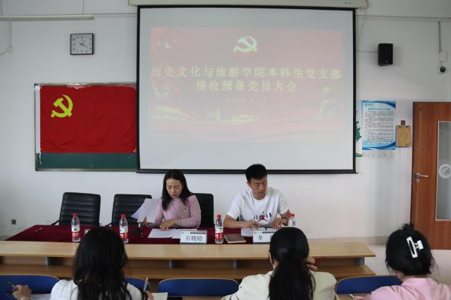为进一步加强和推进党员队伍建设,切实提高党员发展质量,5月12日,历史文化与旅游学院本科生党支部于6#A404召开接收预备党员大会。本次大会由本科生党支部书记石晓晗主持,学院党委副书记卢庆洪、辅导员辛超出席本次会议。党支部17名正式党员、41名预备党员及20名拟发展人员参会。
