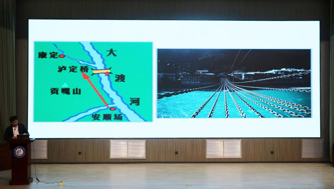 马老师以红军长征途中的一场战役——飞夺泸定桥为主题,介绍战役背景,剖析伟大长征精神的丰富内涵,教育引导学生传承红色基因,发扬红色传统,从伟大长征精神中汲取奋发前进的精神力量。