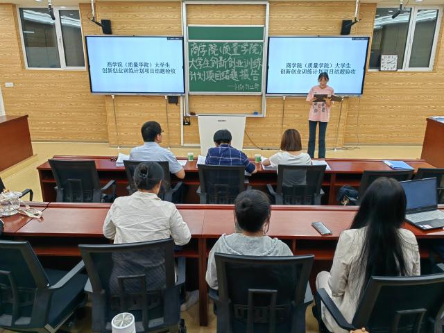 为培养商学院(质量学院)学子勇于探索,注重实践的良好品质,提升自我综合能力和核心竞争力,展现当代青年学子的新风貌,5月21日,我院于东校区1#710举办大学生创新创业训练计划项目结题报告验收活动。数学科学学院牛传择,农学与农业科学学院杨婧、创新创业学院王鑫三位评委老师和各项目组同学参加了本次汇报。