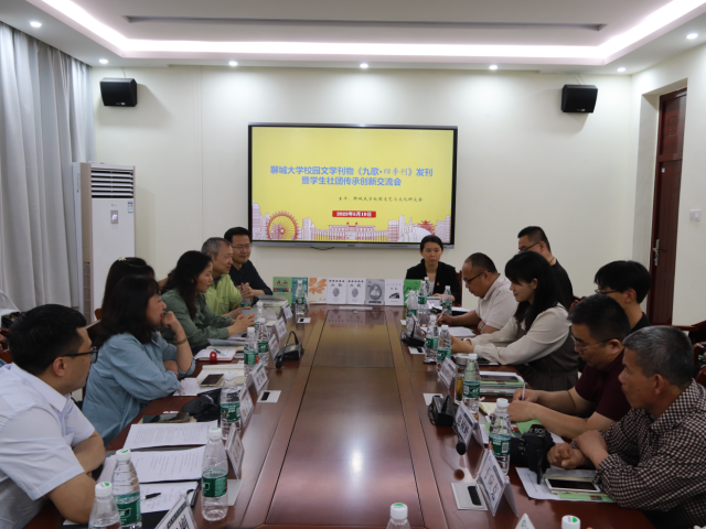 座谈会由秦治洲主持。座谈会第一项,秦治洲介绍办刊基本情况,包括名称由来、设计思路、刊物容量、经费来源支出等。《九歌·四季刊》对内作为文学爱好者的交流创作平台、对外作为校园文化相互学习的良好纽带,体现校园文化的传承创新,在文学交流方面具有重要意义。秦治洲幽默风趣的语言与朴实精炼的讲话开好局、起好步,奠定了本次座谈会友好交流、真诚分享的基调。座谈会第二项,卢军为刊物揭封并讲话致辞。她对九歌文学社发刊活动寄予期许,希望《九歌·四季刊》能够成为学生文学素养成长的平台,优秀创作者可以为青年创作提出建议指导,从而进一步营造文学院的良好育人氛围。座谈会第三项,梁宝梅发表感言。“文学具有直击人心的力量”,作为一名多年执笔耕耘的文学爱好者,她提到九歌文学社在塑造青年正确三观与培育青年爱国精神方面起到重要作用,并诚挚地期愿九歌文学社能够“走得更稳、行得更远”。座谈会第四项,刘广涛分享指导社团创作的心得。“尊重文字的人值得尊重”,慷慨激昂、极具感染力的话语体现刘广涛对文学“虔诚的爱”。他表示,文学尤其是校园文学,是心灵的一片净土,青年创作者要高举情怀与梦想的旗帜,发扬理想主义精神,耐心打磨优秀作品,为《九歌·四季刊》的内容建设添砖加瓦。座谈会第五项,王武臣、李明蔚给出文学创作方面的建议。其中,王武臣关注文学作品的互联网传播路径,倡导芊芊学子投身于文学阅读与创作之中,话语间尽显创新精神与人文关怀。李明蔚作为“文学发烧友”,追寻文学的本真,强调文化素养在创作中的重要性,对九歌文学社的传承与创新路径提出建议。座谈会第六项,许静作为校刊编辑给出专业指导,她不仅对供稿作品质量表示肯定,还对《九歌·四季刊》第二期的创作提出设想,希望刊物能与报刊多加合作、繁荣创作。座谈会第七项,袁方华、张辛茹分享文学创作心得。其中,袁方华作为一线工人,独特的从业经验与充足的创造原料使他创作出众多工业题材小说,作品主要描写时代浪潮下人们的彷徨与内心的迷失,此外,袁方华提出“三新”主张,倡导创作者们要善于捕捉生活中的灵感,加强对生活的切身体会与深度思考。张辛茹才华横溢,有众多优秀作品傍身,她在文字中领悟生活,以吃为喻,将风土人情、所见所闻浓缩在舌尖,分享“文学让人生有滋有味”的创作理念。座谈会第八项,张跃峰谈论创作思路并作出特色指导。他与儿童文学对话,关心校园文化业态,关注九歌文学社创作,对九歌文学社的未来予以祝福,为本次座谈会画上完美句号。