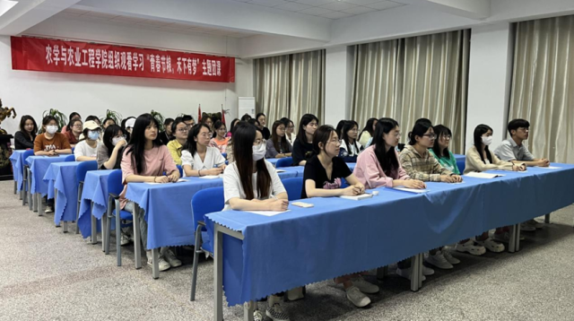 5月23日,农学与农业工程学院于东校区三号楼虚拟仿真实验室组织观看学习“青春节粮,禾下有梦”主题团课。2020级、2021级、2022级各班团支书及学生会骨干成员参与。