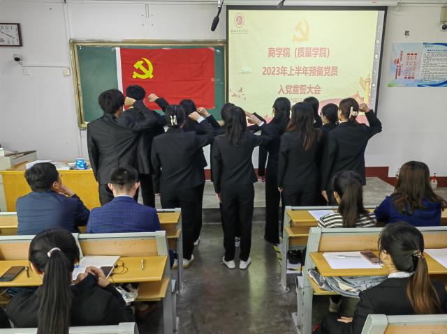 为继承和发扬党的光荣传统和优良作风,进一步增强基层党组织的战斗力、凝聚力和吸引力,5月25日,商学院(质量学院)于东校区1#305为预备党员举行庄严而隆重的入党宣誓大会。本科生第一党支部书记韩亭亭、第二党支部书记刘玉华、第三党支部书记焦艳芳和研究生党支部书记赵耀腾出席了本次会议。
