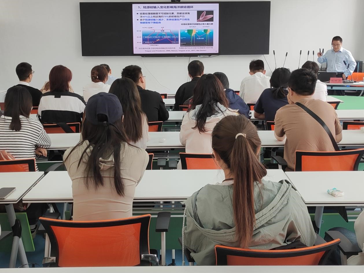 宋照亮教授基于多年地球化学循环研究的学术经验,分别从碳硅循环的耦合过程与机制、湿地生态系统碳生物地球化学循环、湿地生态系统硅循环及其碳汇效应三个方面展开论述了碳硅循环耦合机制对生态变化与地球系统的重要性,梳理了土壤系统有机碳储存的周转过程,使同学们对环境科学与地球化学循环的关系有了更深入、更辩证的了解与体会,宋教授的演讲如行云流水,丝丝入扣,赢来了阵阵掌声。