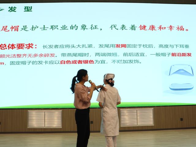 “不学礼,无以立”。主讲人姚萍萍指出,护理礼仪作为一种专业文化,不仅是护士个人形象、职业素养的完美体现,更是医学院品牌与形象的良好诠释。她以“第一印象效应”为切入点,从仪容、仪表、仪态三大方面进行了多维度、全方位的系统化培训,从“沟通礼仪”、“举止礼仪”两方面详细介绍了工作时要注意的礼仪问题,并通过大量形象生动的视频照片及实操练习让护理礼仪规范更加深入人心。姚萍萍表示:磁护服务,以礼赢心,全体护理学学生要以此次培训为契机,不断修身立德,自觉培养良好的职业素养和沟通协调能力,树立全心全意为患者服务的责任心和事业心。