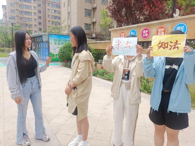 普法恒久远,法制暖人间。普法宣传活动主要是向居民大力宣传、讲解基本的法律常识。同学们认真了解了《中华人民共和国民法典》《消费者权益保护法》等与居民生活息息相关的法律知识,并做好任务分工。活动过程中,同学们在小区广场搭建了“法治小摊”,通过发放法律知识手册的方式进行宣传,宣传册内容包括整个消费流程等法律相关知识。发放手册时,志愿者邀请居民关注中国普法微信公众号、中国法制网,并宣传依法维权的正确途径,像民事诉讼、行政诉讼、刑事诉讼。同学们还分析了各个消费环节中经常容易出现的问题,以典型案例提醒居民、增强居民的法律观念和维权意识。随后,志愿者们向居民仔细宣讲了《中华人民共和国民法典》中涉及的土地承包、土地经营等方面的法律知识。活动结束后,在场所有的居民都表示获益匪浅,了解到了平时忽略的法律知识盲区,以后也将会主动了解更多法律知识。