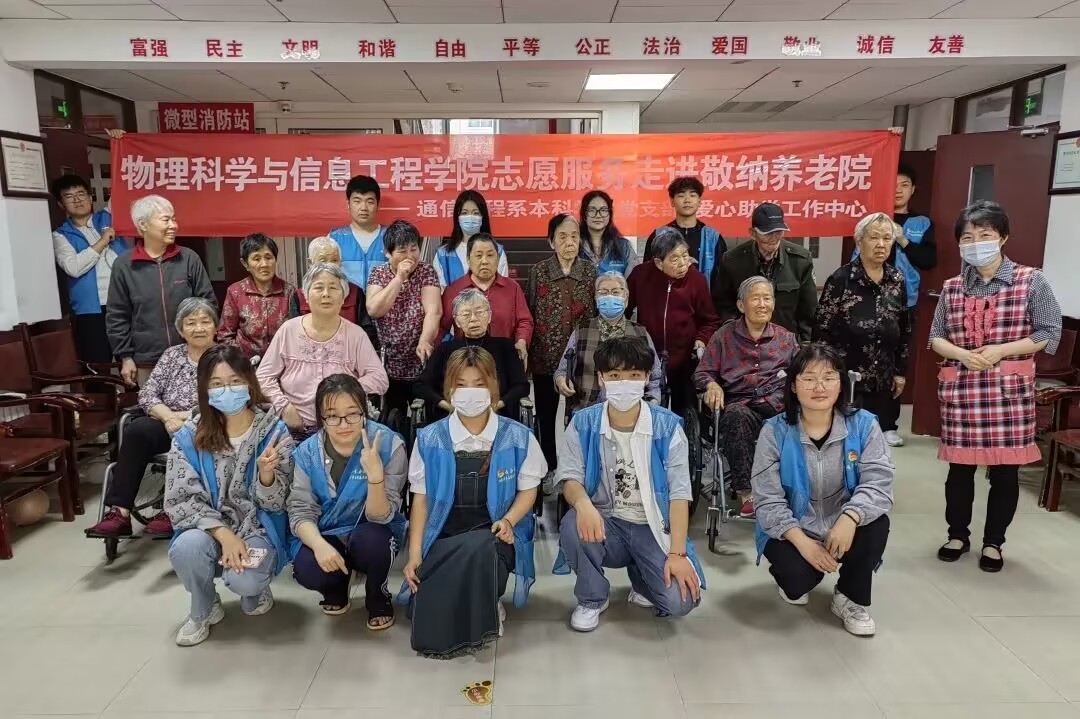 树敬老之风,促社会文明。为弘扬中华民族优秀传统美德,倡导“奉献、友爱、互助、进步”的志愿精神,大力宣传爱老助老的社会风尚。5月27日,物理科学与信息工程学院的志愿者们继续走进敬纳养老院开展“敬老助老,从我做起”志愿服务活动,为老人们带去陪伴和欢乐。本次活动由通信工程系本科学生党支部、爱心助学工作中心主办。