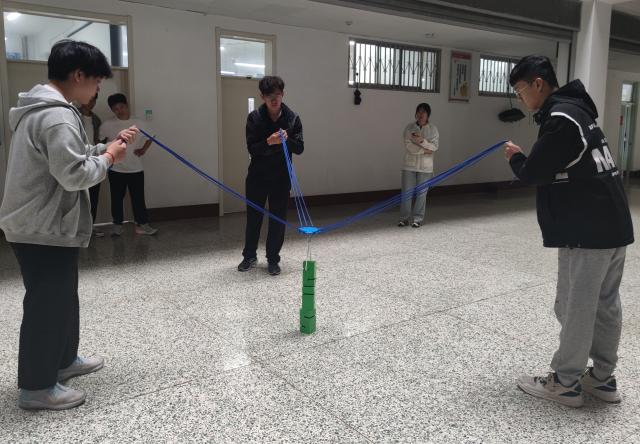 本次趣味运动会有多个具有创意的比赛项目,包括三人四足、你比划我猜、合力建塔等。三人四足比赛吸引了众多同学的注意和参与。三人四足比赛是由三人成一组,其中两名同学将第三名同学托起,被托起的同学需要保持好平衡,扶稳下方两名同学的肩膀,而行走的两个人需要在奔跑中互相协作,共同完成比赛。同时,你比划我猜也是一项非常有趣的项目。同学们分成两个小组,每个小组轮流由一名同学来模拟生词或成语,让队友进行猜测。此时,比划的同学需要不断调整自己的语言、表情、手势等,及时对猜题人的猜测做出回应,而猜题的同学则既需要快速思考来猜中词语的意思,又需要及时与比划的同学进行沟通和交流。除了这些,还有一项髙难度的比赛合力建塔,同学们需要在规定时间内,将不同形状和大小的积木,经过合理搭配,建成一个稳定的塔。在比赛中,每一块积木都会对整体的稳定性产生影响,因此,同学们需要时刻调整、排布计划,保证正确又迅速地完成任务。整个比赛期间,同学们热情高涨,展示出了大学生们的激情与活力。