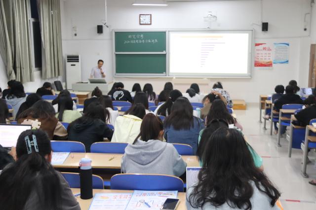 王方明老师首先向同学们讲解了公职考试的种类以及各类考试时间、形式和报名流程,并对国考、选调生、省考(联考)、和省/市直事业单位四类公职考试进行了详细介绍。同时,王方明老师向大家讲述了公考环境,他指出,近年来公职类考试的报考人数持续增加,高校学生对公考的热情不减,考试竞争压力持续增大,建议同学们在报考时结合自身的情况谨慎选择。随后,王方明老师结合同学们的情况,进一步介绍了适合历史学专业、旅游管理专业及外国语言与外国历史专业学生报考的岗位,他详细地讲解了这些岗位具体的工作类型和薪资待遇,并鼓励应届毕业生积极报考。紧接着,王方明老师在如何抉择考公或考研的问题上发表了自己的看法,他认为,如果打算报考各地高端人才引进,享受人才补贴或报考高中学段以上教师,建议先考研,提升自身文化素养。讲座最后,粉笔教育献上为同学们精心准备的公考学习资料和精美纪念品,祝愿同学们成功上岸,争取在毕业前交出满意的毕业答卷。