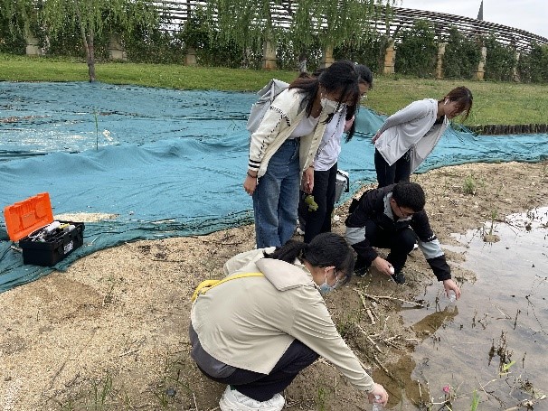 下水方知水深浅,探索真理靠实践。在九州洼月季公园,同学们采取水样,并使用相关实验仪器测量其pH、Do、Eh等相关理化性质。通过这些科学的指标,同学们了解了九州洼月季公园的水体质量,熟练掌握了实验仪器的使用方法,巩固了相关专业知识。