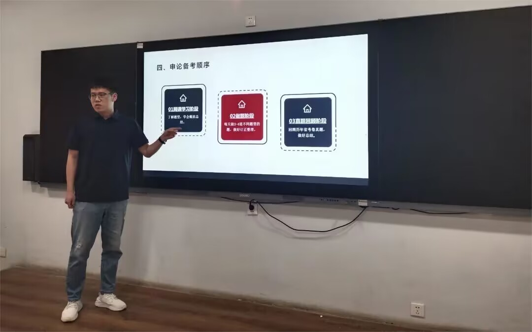 会上,张吉元先从备考时间讲起,他向同学们介绍了考公的流程安排,讲述了如何收集备考信息,深度解析了行测与申论,并分享了自己的备考顺序即教材加网课、刷题巩固、真题模拟三个阶段。之后,张吉元向同学们分享了自身的备考经验。他讲到,笔试要注意考试时间,提前做好备考材料的准备,行测时间紧、任务重,要学会适当放弃,申论要注意字体与规范词,日常做到积累素材。接着,张吉元强调了面试的重要性,并提到,面试要穿着得体,把握答题时间,多与评委交流。交流会的最后,张吉元为同学们分享了一些考公网站与资料,并希望同学们珍惜大学时光,早日明确目标并且实现目标。