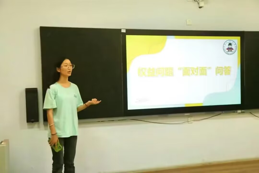 活动伊始,宋迎雪首先向同学们介绍了权益方面的基础知识,不仅增强了同学们的维权意识,还丰富了同学们的维权知识。活动过程中同学们提出发现的各种问题,其中包括食堂、住宿、浴室和后勤保障等方面问题,针对这些疑惑,宋迎雪积极耐心地向同学们解答,同时还向同学们推荐到聊城大学权益服务平台、理工权益君等平台途径,鼓励同学们积极反馈身边中发现的问题,保护同学们的合法权益是物理科学与信息工程学院的责任,保护消费者的合法权益是全社会的共同责任,大学生消费群体要提高自我保护的意识和能力,科学、合理、文明消费,勇敢地对侵害消费者合法权益的行为说不,做到真正的维护自身合法权益。