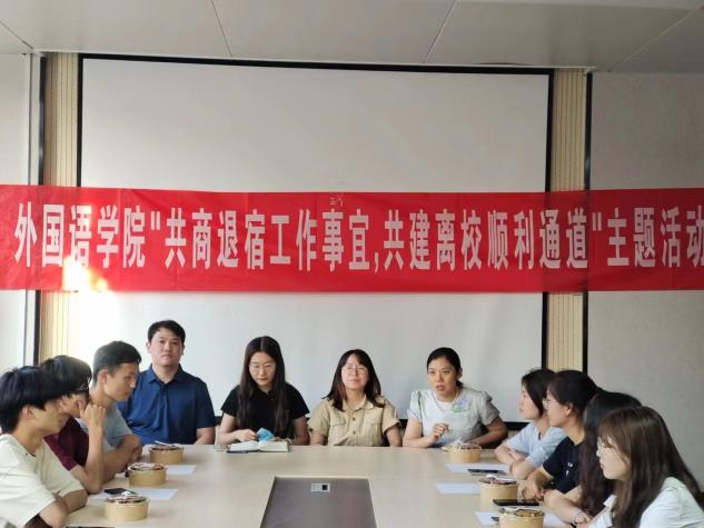 本次会议不但反映出团委书记、辅导员们及宿舍服务中心对毕业生退宿工作的重视,而且展现了外国语学院对毕业生的关注,切实为2023届毕业生提供良好的离校服务。