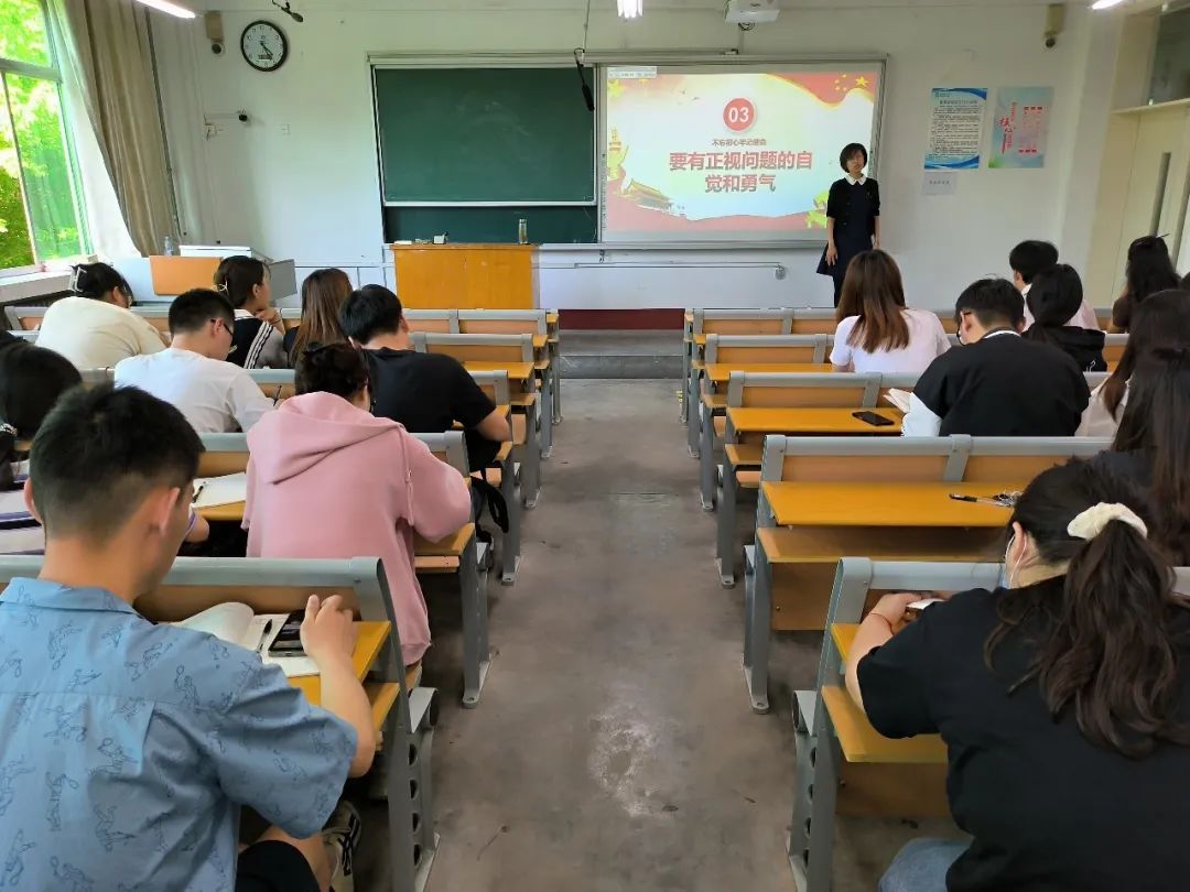 冀院长从集中学习的目的和意义、要有强烈的自我革命精神、要有正视问题的思想和勇气、加强党的集中统一领导四个方面展开讲解。冀院长通过对我院发展历程的解读,分析出正是因为我院三代老师在困难条件下的坚守才有了学院的今天,这正印证了“中国特色社会主义进入新时代,我们比历史上任何一个时期都更接近更有信心和能力实现中华民族伟大复兴”。冀院长特别强调,广大党员干部应该积极发挥先锋模范带头作用,在与我院学生的共同生活、共同学习中,通过一言一行、一举一动在我院学生心中树立良好的形象,提升我院学生的“幸福感、获得感、安全感”。课堂结束后,学生党员结合自己的成长经历,互相交流认识与感悟。他们纷纷表示要在今后日常学习生活中以高标准严格要求自己,充分发挥党员的模范带头作用,以自身行动影响和带动身边同学。