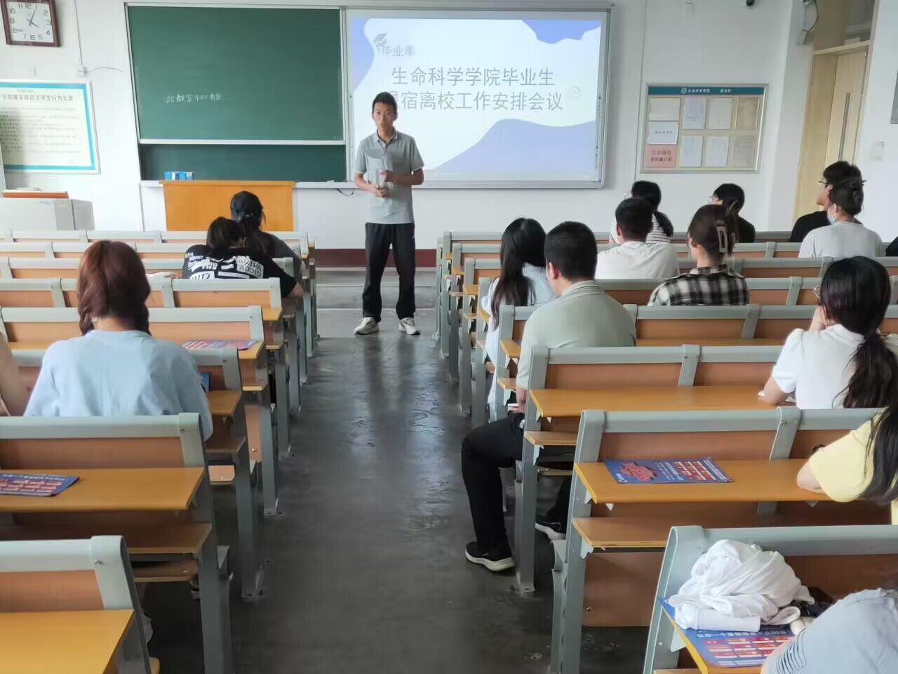 为确保毕业生安全、文明、愉快离校,切实提高宿舍人员的工作效率和服务水平,6月6日,生命科学学院于东校区2#509召开毕业生退宿离校工作安排会议。生命科学学院辅导员任庆超主持会议。