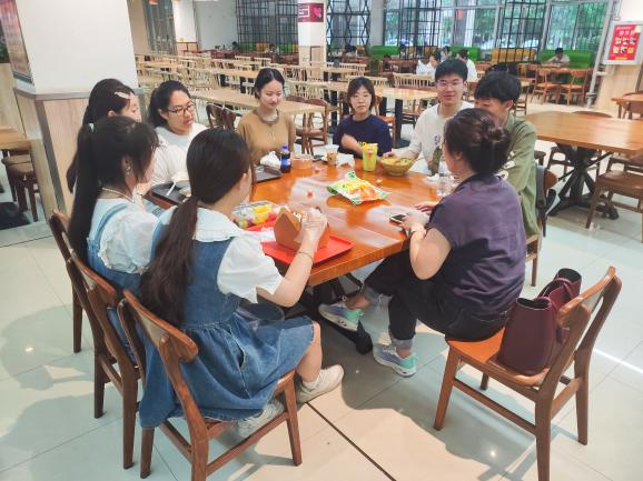 同学们纷纷向老师表达自己的感恩与不舍之情,对学院的辛勤栽培和老师们的关怀帮助表示了衷心的感谢,言语间,毕业生汲取经验、牢记教诲,听有所悟、行有所向,与老师们一同回首过往、展望未来。就餐氛围愈加轻松愉悦,同学们畅所欲言,老师们也对同学们的问题进行热情解答,真诚地祝福同学们在未来的道路上不畏艰险,披荆斩棘拥抱美好的明天。餐厅沙龙活动在和谐温馨与感动的氛围中圆满结束。